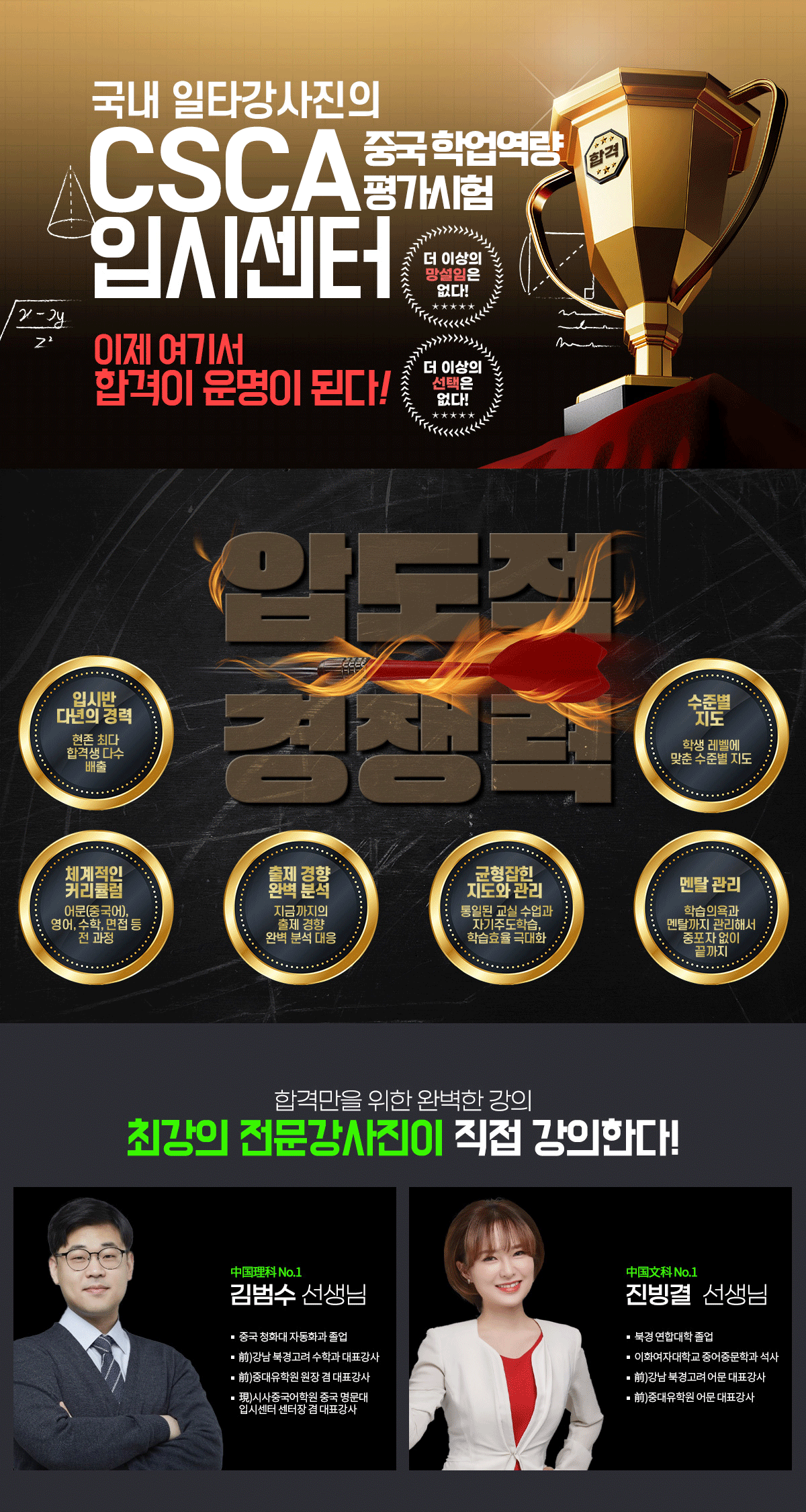 북경대 청화대 복단대 교통대 절강대 남경대 천진대 화동사범대 화동이공대 동화대 중국명문대학 입시준비반 📢 CSCA시험 완벽대비반 📢CSCA에 관하여 알아보자 China Scholastic Competency Assessment for Bachelor Degree Study in China来华留学本科入学学业水平测试(CSCA)올해부터 중국대학교 입시 유형에 큰 변화가 생겼습니다.앞으로는 중국대학교를 지원하려면 통합시험인 CSCA시험 성적를 제출해야됩니다.학교.전공별로 다르나 중문시험(문과,이과)/수학시험/물리.화학시험이 있으며 수학은 모든 전공에 포함됩니다.내년 26년 가을학기를 시작으로 csca성적표를 제출하도록 변경되었습니다.현재 복단대학교가 처음으로 26년입시부터 csca시험으로 필기시험을 대체한다고 공지가 내려왔고유형이 변경되며 원래 3월말이 봤던 복단대학교 필기시험이 csca시험일정인 12월과 1월로 변경이 되었습니다.준비기간이 3개월이상 앞당겨진만큼 철저한 준비가 필요합니다. 중국명문대학 입시반 상담안내 02-768-8013