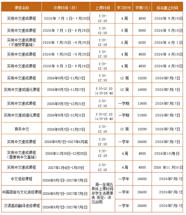 ❗  학비 :* 중국학생과 합반수업 전공 25,800元 * 대외한어과(기타방향) 25,800元 * 대외한어과(중.영쌍어방향) 27,600元