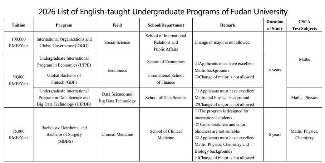 복단대학은 기술과학, 생명과학, 관리과학, 인문과학, 신문학, 법학,경제학, 국제문화교류 등 13개 학원을 가지고 있으며 29개의 국가 중점학과와 5개의 국가 중점 연구실, 58개의 연구소, 61개의 연구 중심을 가지고 있으며 국내 제일, 세계최고의 대학으로 발돋움을 하고 있다.