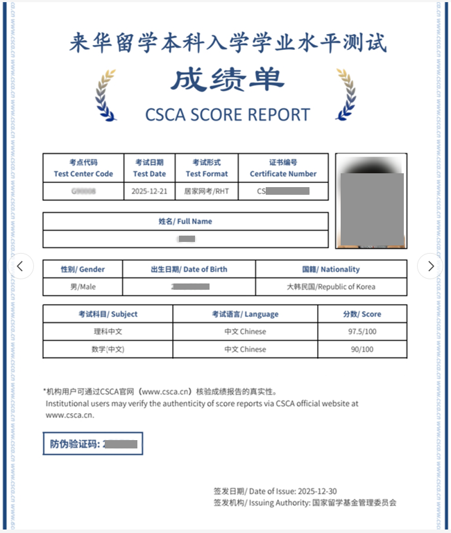 来华留学本科入学学业水平测试(CSCA)