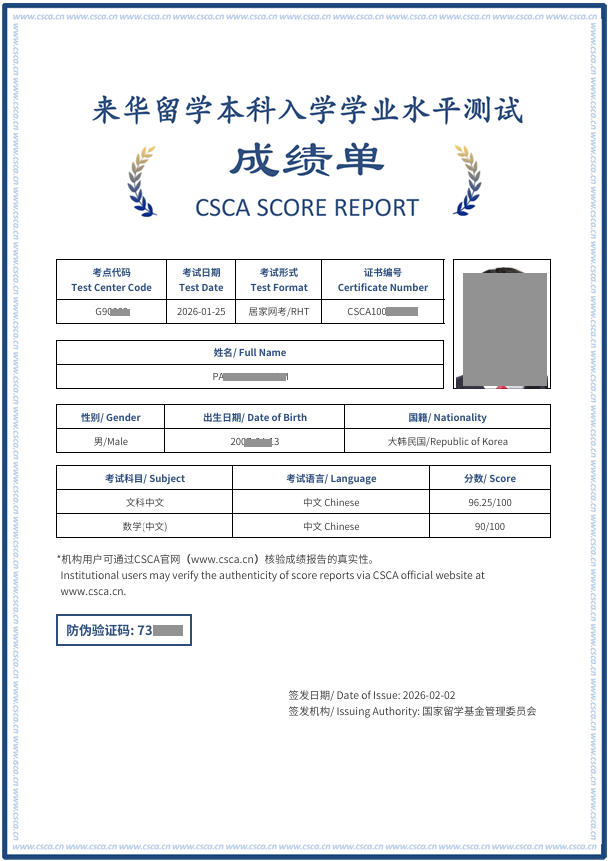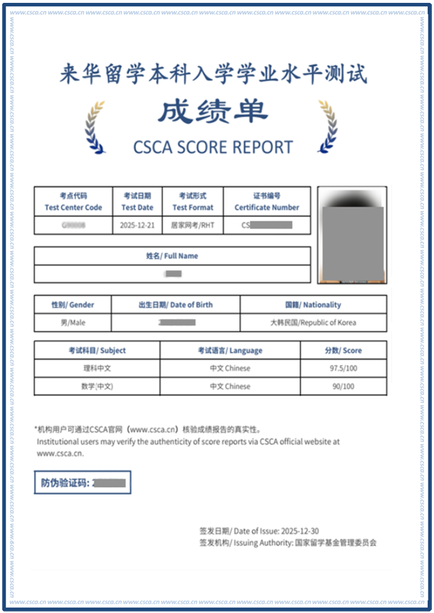 중국대학교를 지원하려면 통합시험인 CSCA시험 성적을 반드시 제출해야 합니다.