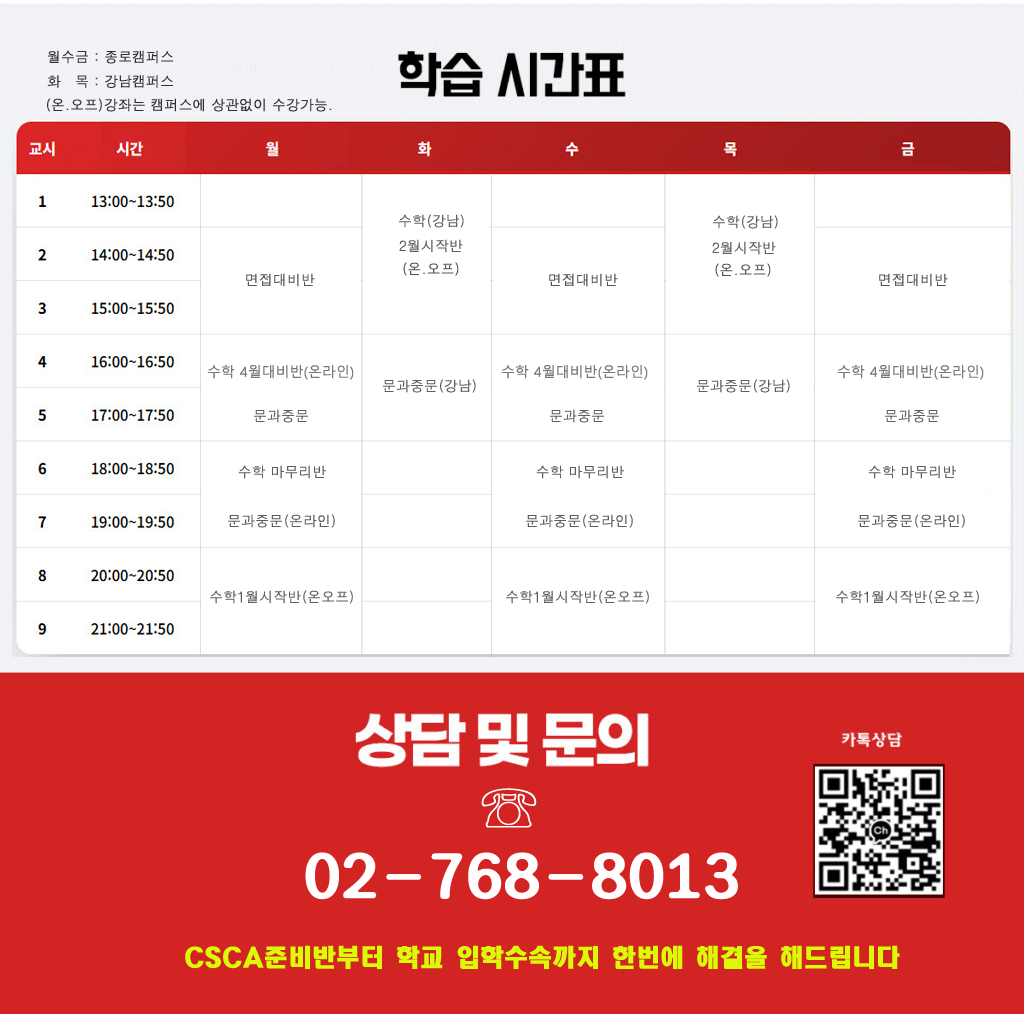 커리큘럼은 다가오는 CSCA시험일자에 맞춰 약간의 변동이 있을수 있습니다